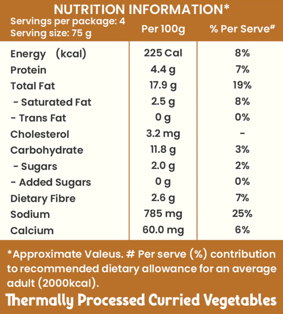 Onion, Tomato, Curd, Refined Sunflower Oil, Ghee, Garlic, Ginger, Green Chilli, Iodized Salt, Coriander Leaves, Mint Leaves, Fenugreek Leaves, Lemon, Spices [Dried Red Chilli, Coriander Seeds, Turmeric Powder, Cinnamon, Cardamom, Cloves, Mace, Star Anise, Kapok Buds]