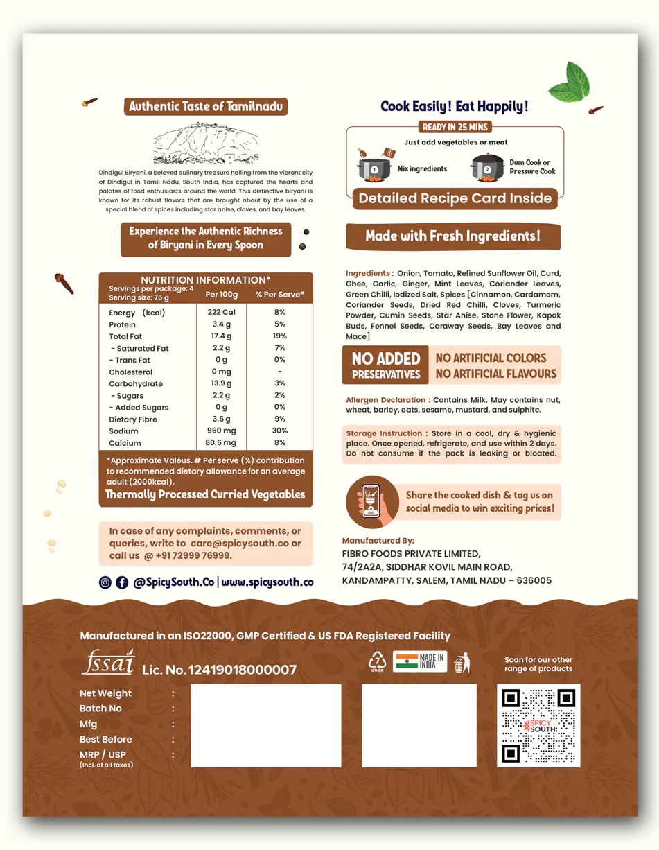 Makes about 2 KGs of Biryani, Generously Serves 4 People, Ready in 25 minutes, Can be cooked with a choice of protein, Net Weight – 300g